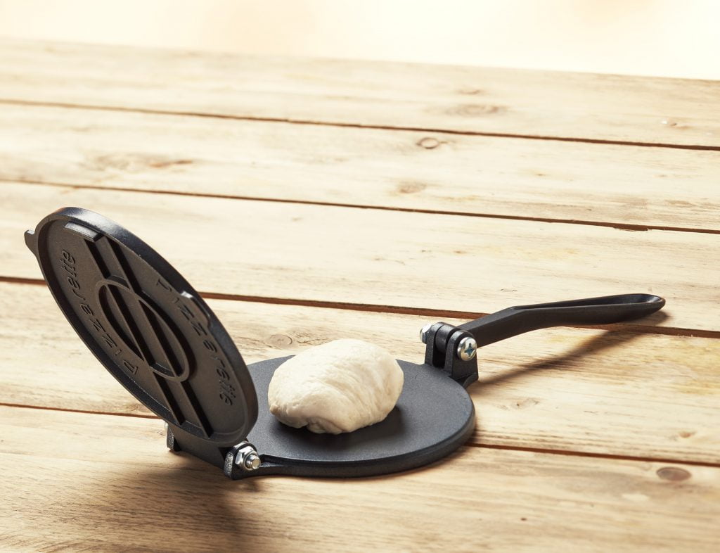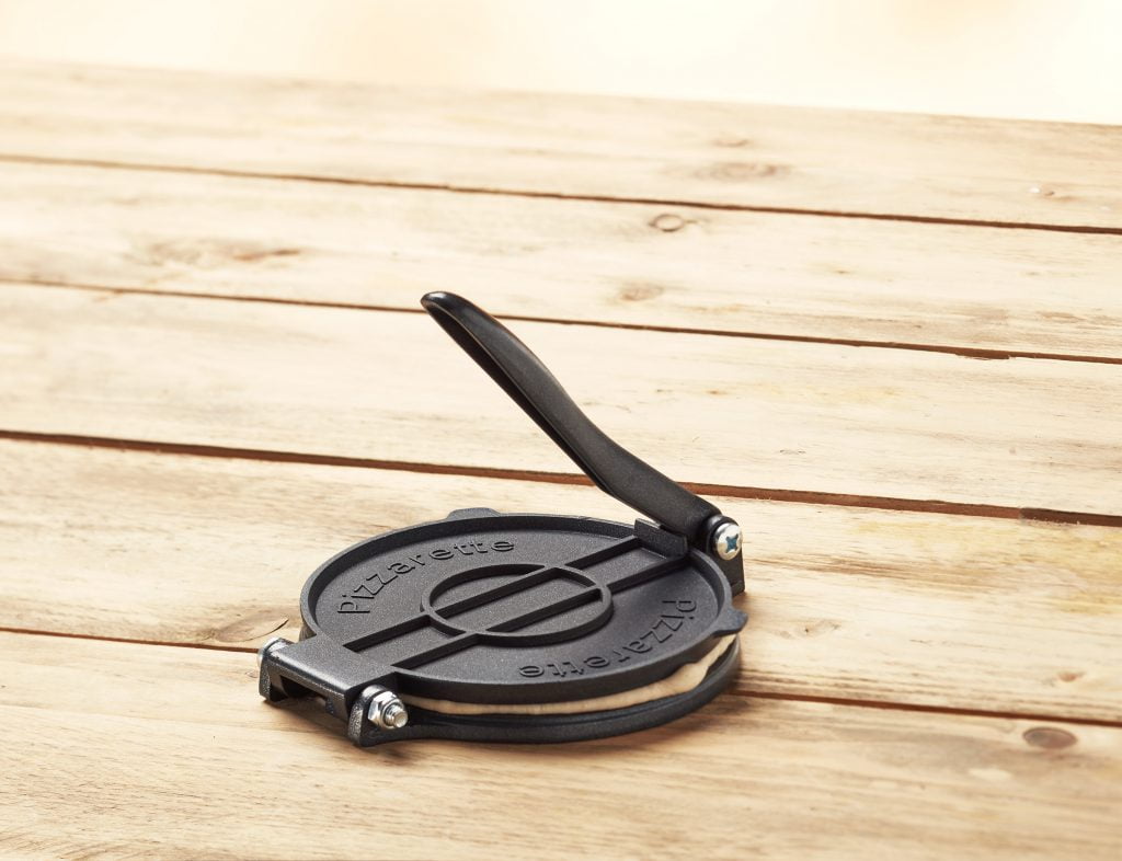 Als je je eigen deeg maakt, kun je het gemakkelijk in de juiste vorm krijgen met de Pizzarette Press. Je gebruikt hiervoor een klein bolletje deeg, legt het in het midden van de Pizzarette Press met wat extra bloem en drukt het deeg vervolgens plat. Ook leuk om aan tafel te gebruiken!